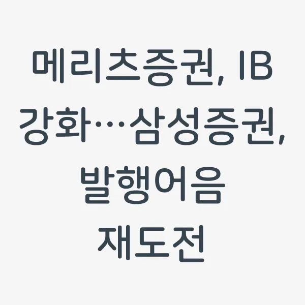국내 증권업계의 치열한 경쟁 속에서 메리츠증권 과 삼성증권 이 각각 IB 부문 강화와 발행어음 시장 재진출을 통해 새로운 도약을 꿈꾸고 있습니다. 과연 이들의 전략은 성공할 수 있을까요? 투자자들에게 어떤 영향을 미칠지, 지금 바로 확인해보세요! (키워드: 메리츠증권, 삼성증권, IB, 발행어음, 투자전략)